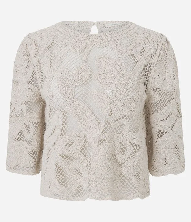Blusa Regular em Tricô Texturizado com Manga Curta Bege