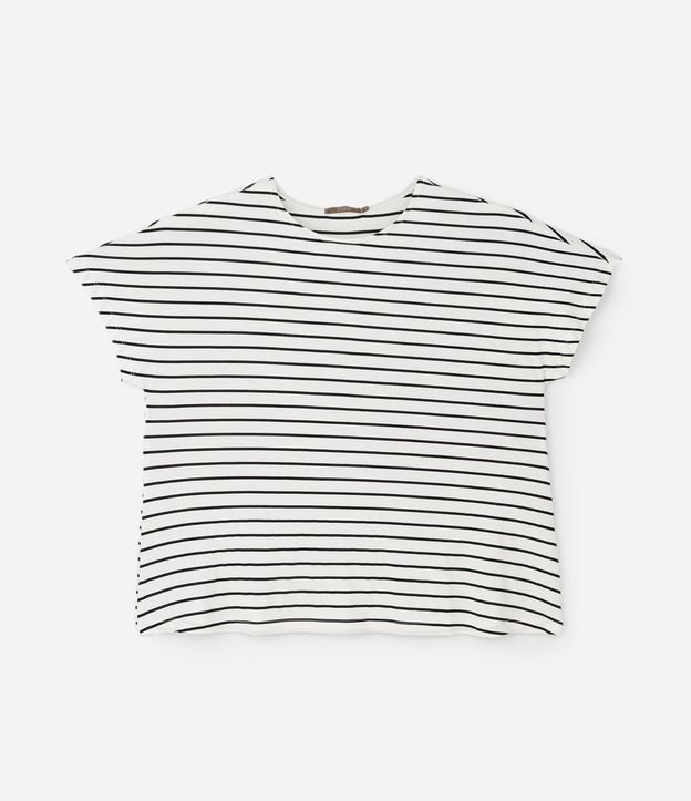 • Blusa Regular em  Viscolycra com Estampa de Listras Curve & Plus Size Off White/Preto 3