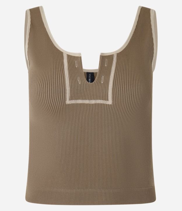 Blusa Seamless com Recorte V e Detalhes Contrastantes Marrom