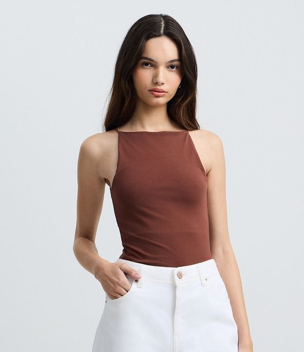Blusa sem Manga com Decote Halter e Alça Elástico Marrom