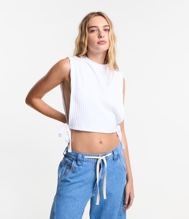 Blusa sem Manga Cropped Texturizada com Amarração na Lateral