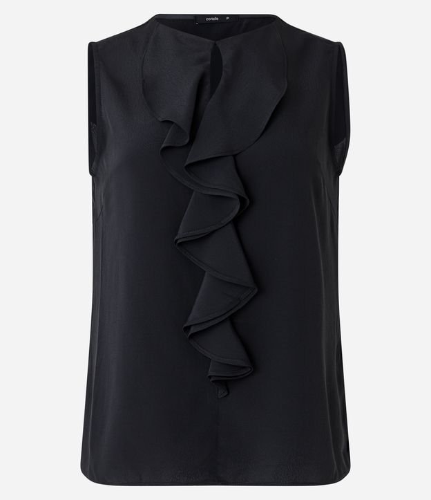 Blusa Sem Manga em Chiffon com Babado Jabô na Gola