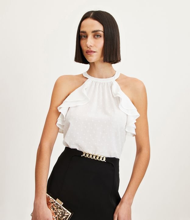 Blusa Sem Manga em Chiffon com Bolinhas Texturizadas