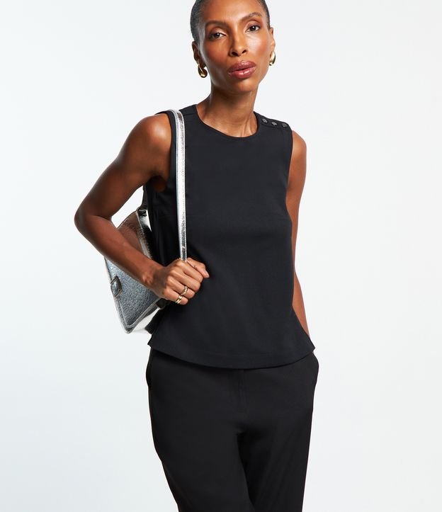 Blusa sem Manga em Crepe com Botões nos Ombros Preto