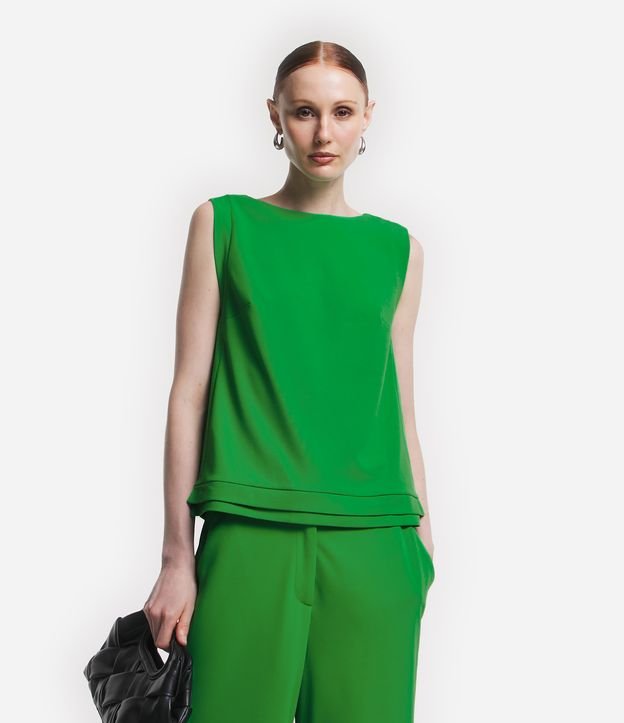 Blusa Sem Manga em Crepe com Sobreposição na Barra