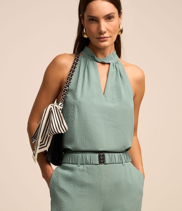 Blusa Sem Manga em Jacquard com Golinha Alta e Detalhe Vazado