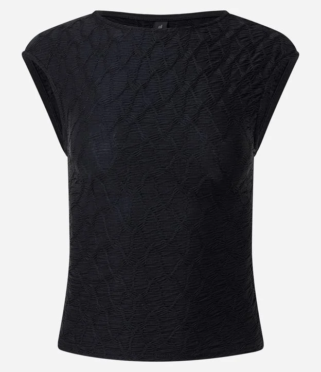 Blusa Sem Manga em Malha Texturizada com Costas Abertas Preto