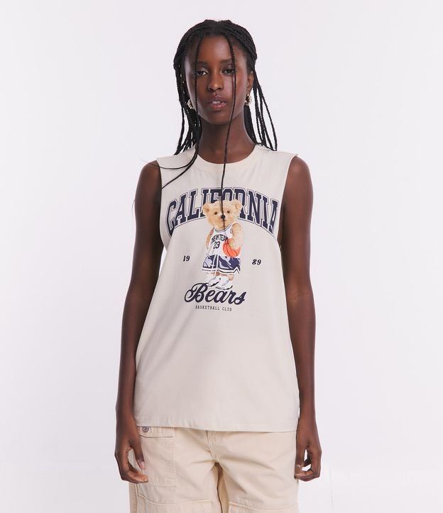 Blusa sem Manga em Meia Malha com Estampa Urso Jogador de Basquete