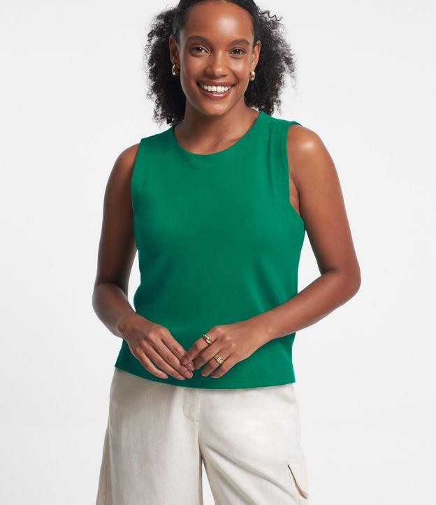 Blusa sem Manga em Meia Malha com Fechamento Gota nas Costas