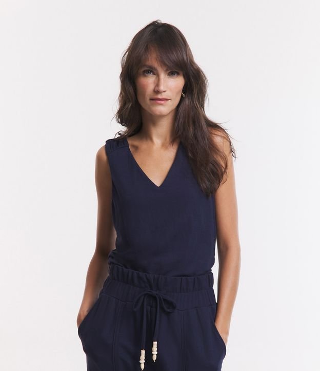Blusa Sem Manga em Orly Decotada com Franzido na Alça
