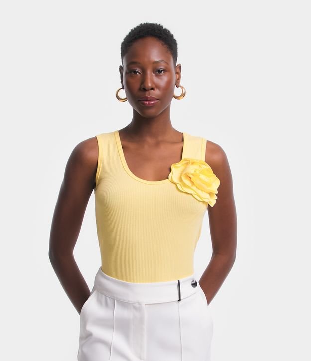 Blusa Sem Manga em Ribana com Flor de Tecido Aplicada