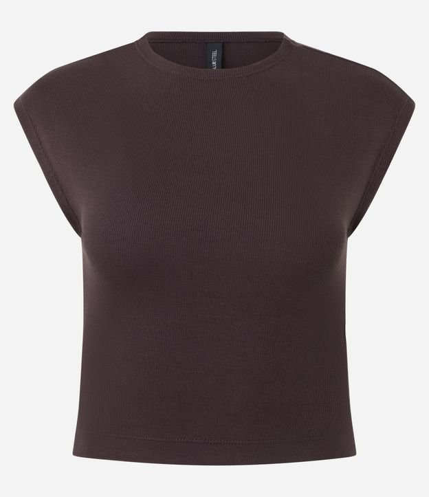 Blusa sem Manga em Ribana com Textura Caneladinha Marrom Escuro