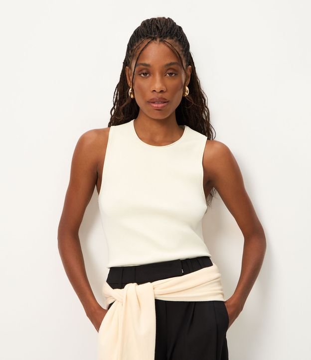 Blusa sem Manga em Tricô com Gola Redonda Branco