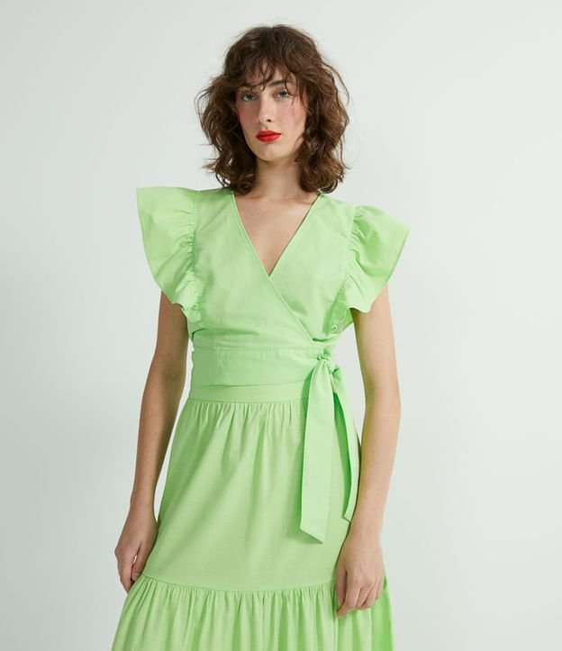 Blusa Sem Manga em Tricoline com Babado no Ombro e Amarração na Cintura