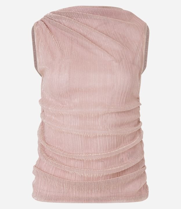 Blusa sem Manga em Tule com Decote Degagê e Efeito Metalizado