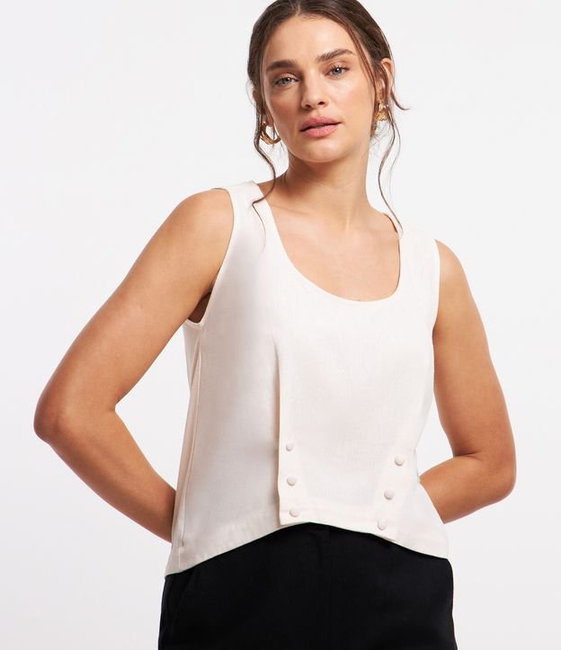Blusa sem Manga em Viscolinho com Pregas e Detalhes em Botões