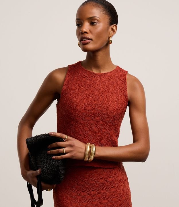 Blusa sem Mangas em Tricô Texturizado Vermelho