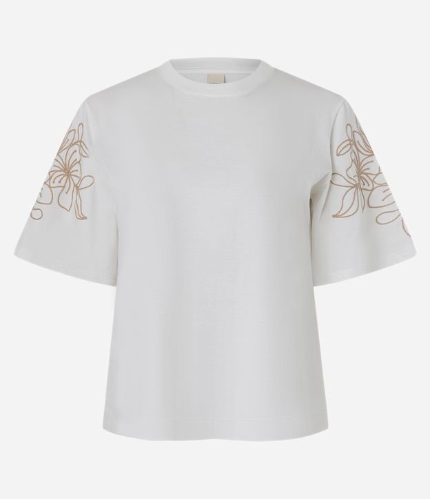 Blusa Slim em Algodão com Bordado Folhagem nas Mangas Branco