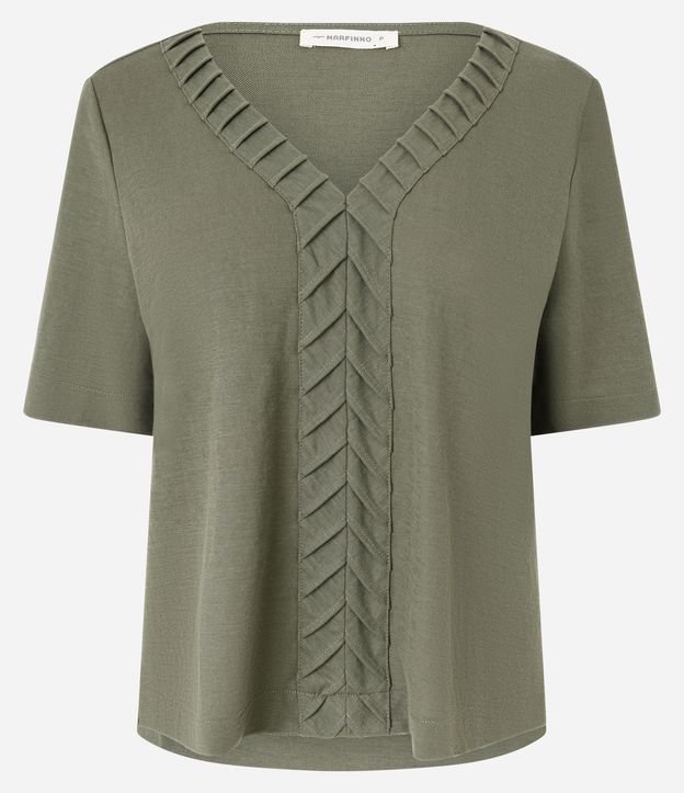 Blusa Slim em Piquet com Decote V e Detalhe Texturizado Verde