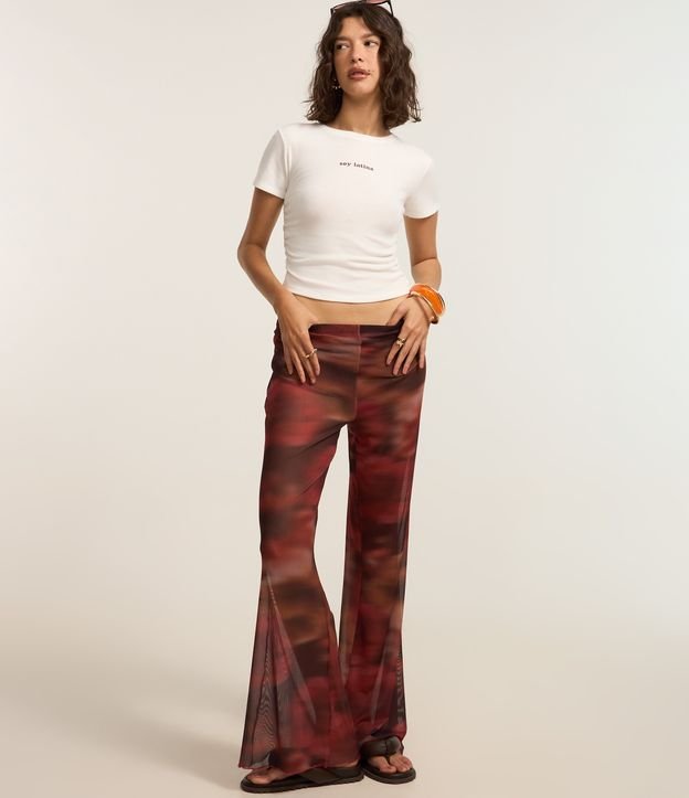Blusa T-shirt em Ribana com Franzidos Laterais e Lettering Soy Latina Branco