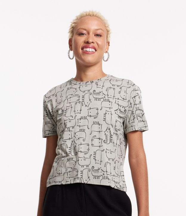Blusa T-shirt em Viscose com Estampa de Gatinhos