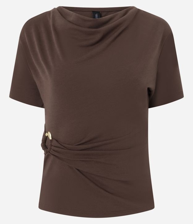 Blusa Texturizada com Decote Drapeado e Aviamento na Cintura Marrom