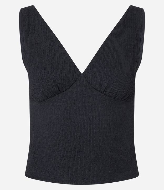 Blusa Texturizada com Decote V e Recorte no Busto Preto