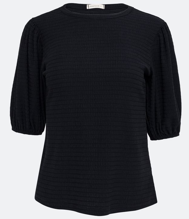 Blusa Texturizada com Gola Redonda e Manga Bufante