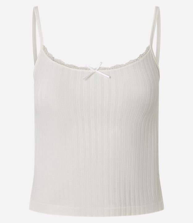 Blusa Texturizada em Seamless de Alcinha com Renda e Lacinho Off White