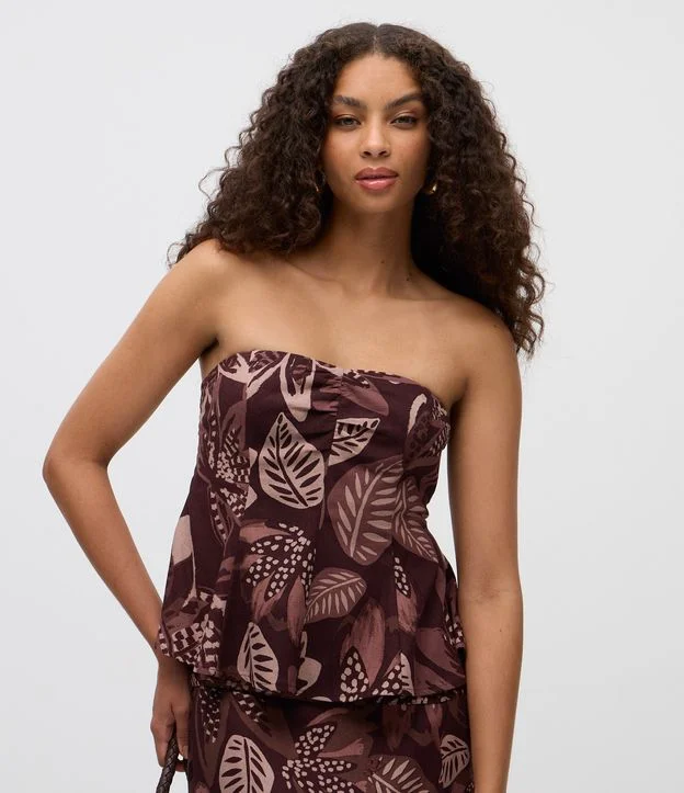 Blusa sem alças em linho com estampa floral, trazendo visual moderno e elegante. Possui caimento leve, estrutura confortável e acabamento amplo, ideal para compor produções frescas e versáteis. Peça perfeita para looks coordenados ou independentes no dia a dia.