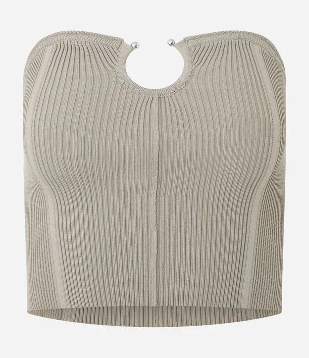 Blusa Tomara que Caia em Tricô com Aviamento no Busto Bege