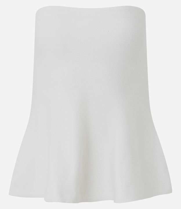 Blusa Tomara que Caia em Tricô com Peplum na Barra Branco