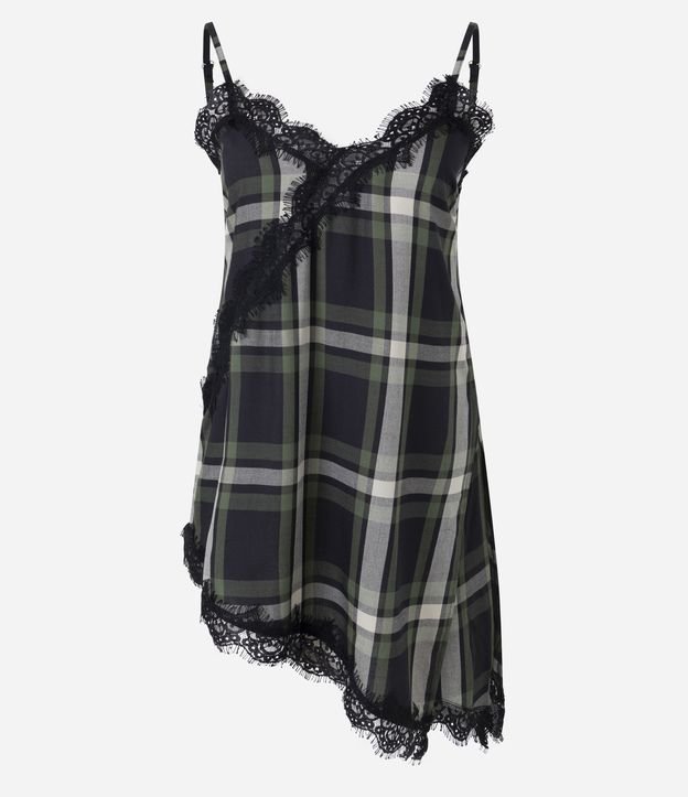 Blusa Xadrez com Renda e Barra Assimétrica Verde
