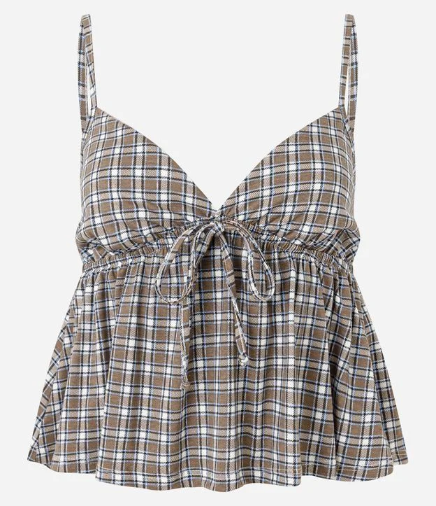 Blusa Xadrez de Alcinha em Algodão com Decote V Marrom