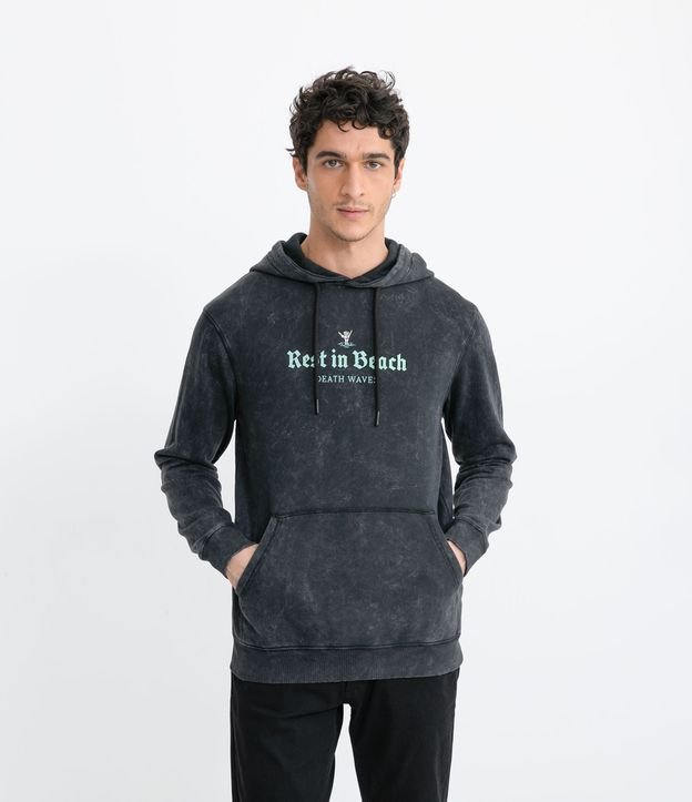 Blusão Canguru em Moletom Estonado Estampa em Lettering