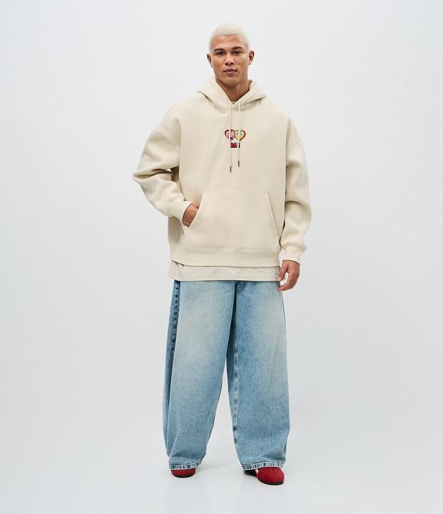 Blusão boxy fechado, com capuz, bolso canguru e estampa do Bob Esponja com o Patrick.