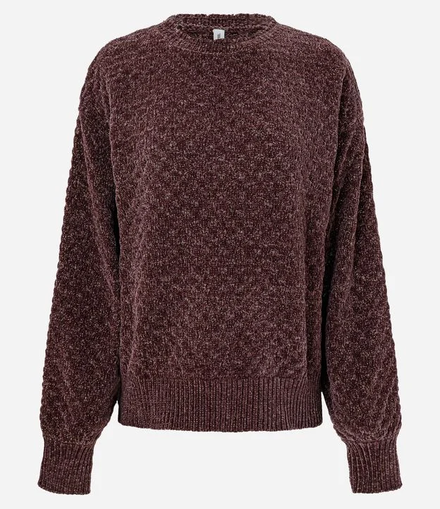 Blusão em tricô chenille com textura macia e caimento confortável. Possui gola redonda e acabamento retilínea na gola e nos punhos, trazendo charme sutil ao visual. Modelagem regular ideal para compor looks de inverno com aconchego e estilo para o dia a dia.