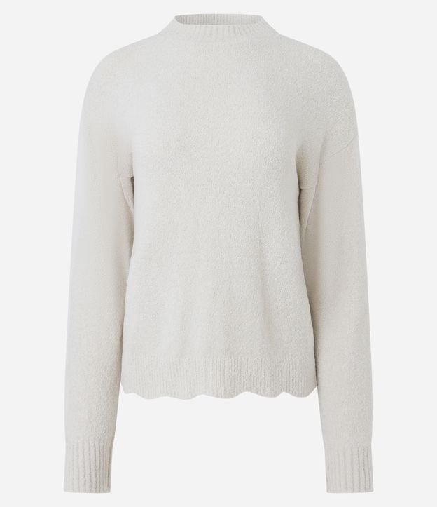 Blusão em Tricô Mousse Liso com Barra Ondulada Branco