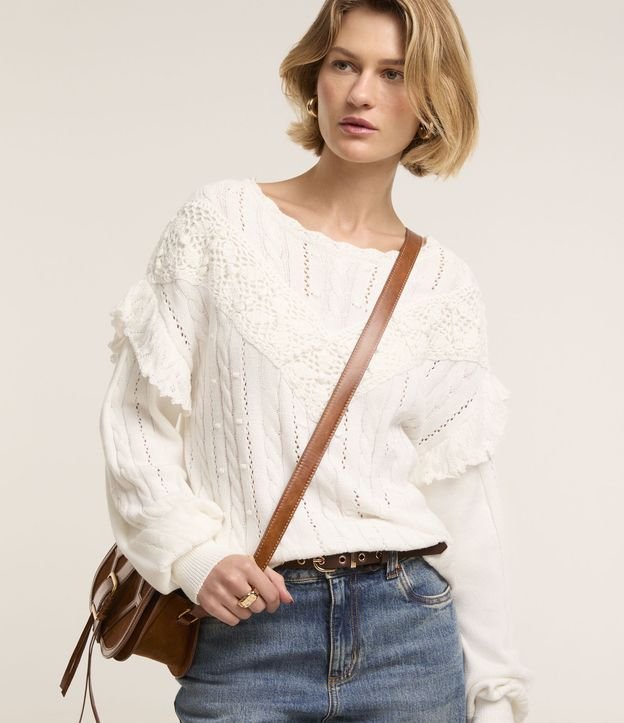 Blusão em Tricot Manga Longa com Detalhe no Decote e Babados na Cava