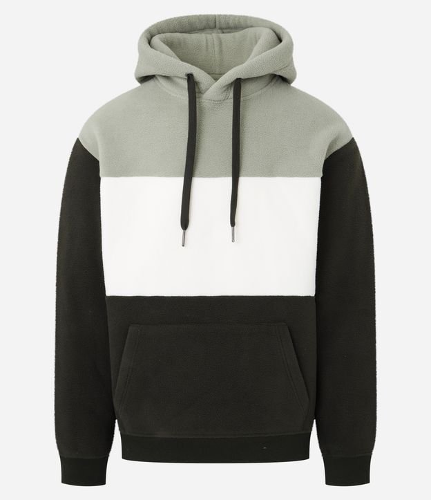Blusão Fechado em Fleece com Blocos de Cor e Bolso Canguru