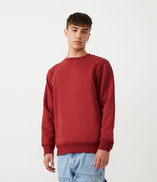 Blusão Fechado Básico em Moletom com Detalhes em Ribana