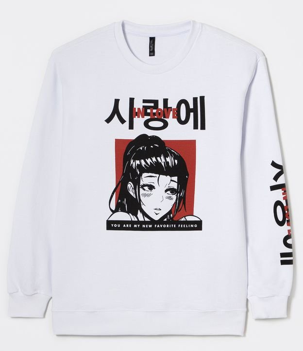 Blusão Fechado em Moletom Estampa Escritas Personagem Mangá