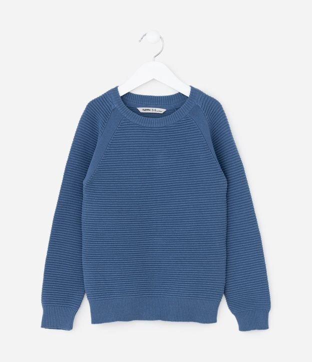 Blusão Infantil Canelado com Cava Raglan - Tam 5 a 14 Anos Azul