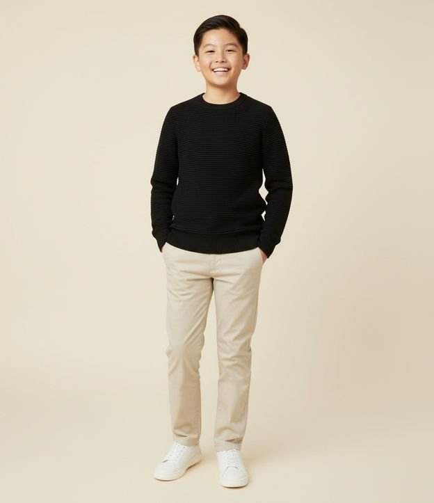 Blusão Infantil Canelado com Cava Raglan - Tam 5 a 14 Anos Preto