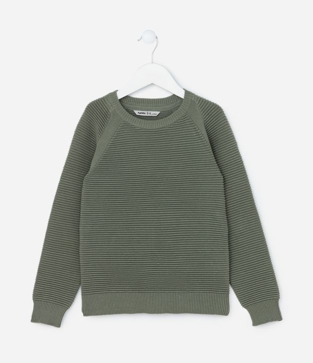 Blusão Infantil Canelado com Cava Raglan - Tam 5 a 14 Anos Verde