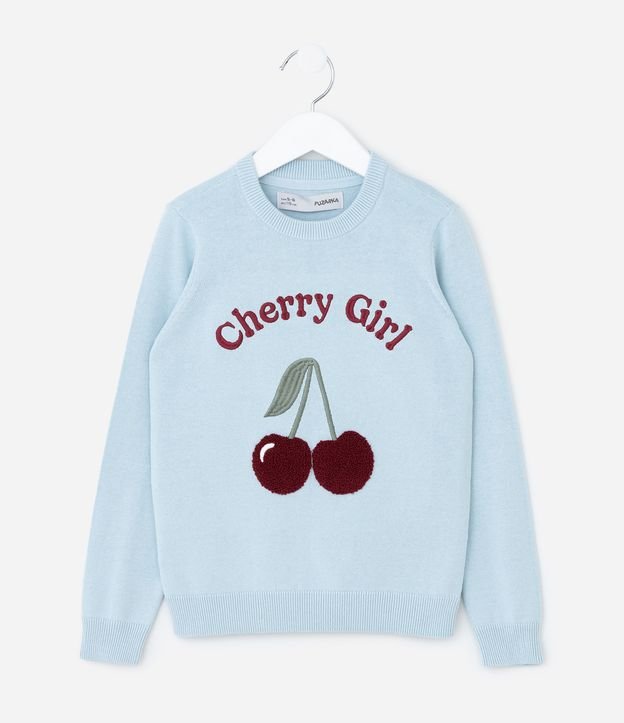 Blusão Infantil em Algodão com Estampa de Cereja - Tam 5 a 14 Anos Azul