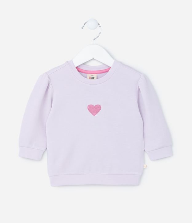 Blusão Infantil em Modal com Estampa Bordada de Coração - Tam 0 a 18 meses Lilás