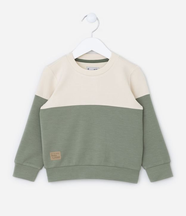 Blusão infantil confeccionado em modal, com recortes contrastantes, mangas longa e tag na barra.