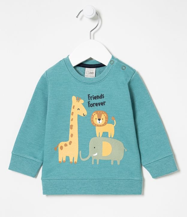Blusão Infantil em Moletom Peluciado com Estampa de Bichinhos - Tam 0 a 18 meses