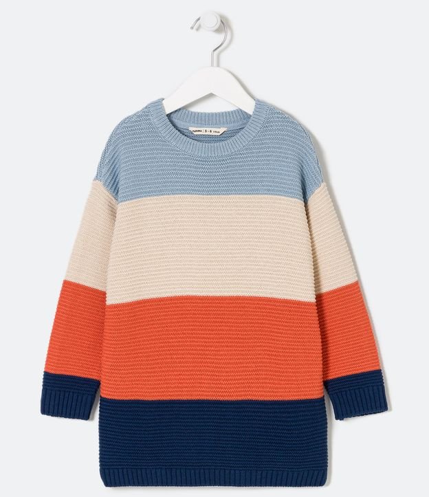 Blusão Infantil em Tricô com Blocos de Cor - Tam 5 a 14 Anos